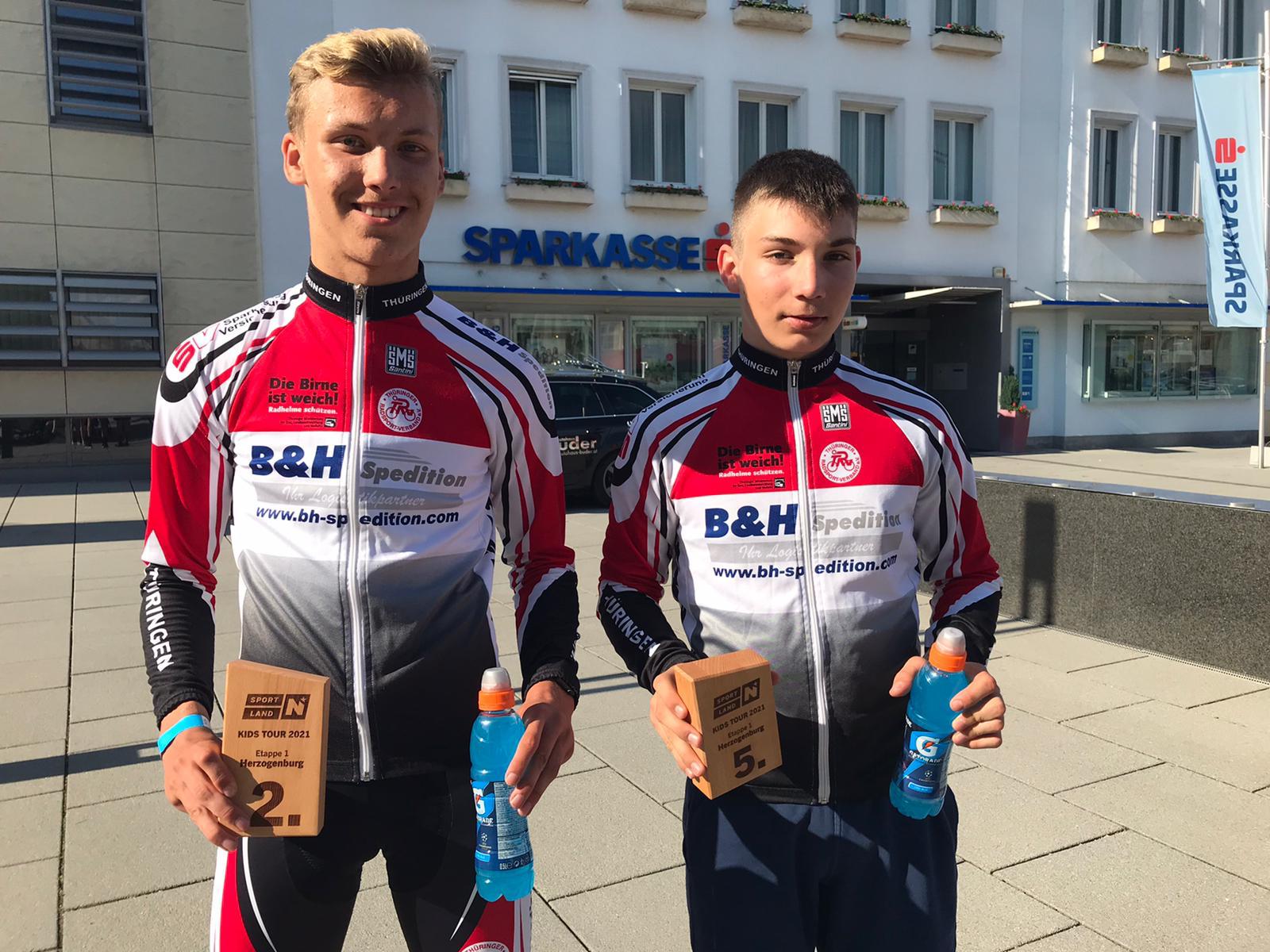 Für den letzten Renntag standen in der Altersklasse U17 noch die Entscheidungen im Abschlussrennen des Omniums auf dem Programm. Bereits eine Woche zuvor beim trainalyzed-wahoo Nachwuchs-BahnCup optimal auf einander eingespielt, fuhren die Thüringer Madison-Teams am letzten Tag der Deutschen Meisterschaften noch einmal zu Gold und Silber. Hugo Esch (RSC Waltershausen-Gotha e.V.) und Enzo Albersdörfer (SSV Gera 1990 e.V.) setzten sich in der U15 an die Spitze und beendeten das Rennen überlegen mit 27 Punkten als neue Deutsche Meister. Mit 12 Punkten auf dem zweiten Rang, durfte eine weitere Thüringer Mannschaft auf dem Podium stehen – Bruno Geißler (SV Jena-Zwätzen e.V.) und Benjamin Bock (SSV Gera 1990 e.V.). Die Geraerinnen Gwen Böttcher und Isabelle Gentzik (beide SSV Gera 1990 e.V.) errangen in der Altersklasse U15w den vierten Platz.