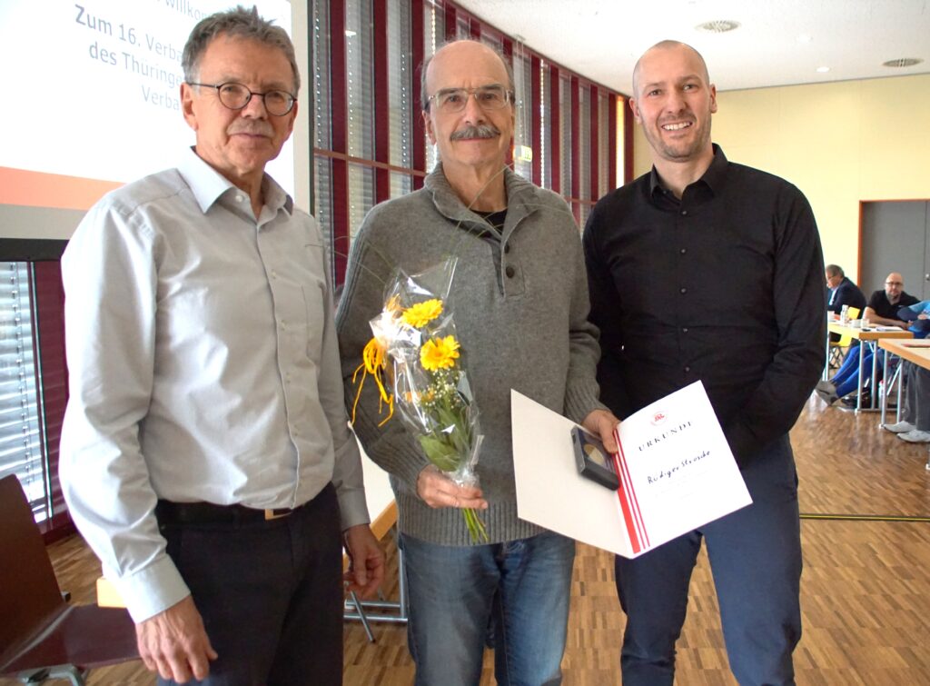 Für die Durchführung der Ehrungen und weitere Grußworte durften wir David Möller, den Thüringer Staatsekretär für Sport und Ehrenamt, herzlich bei uns begrüßen. Gemeinsam mit TRV-Präsident Ralf Ulitzsch übergab er den zu Ehrenden ihre Auszeichnungen.